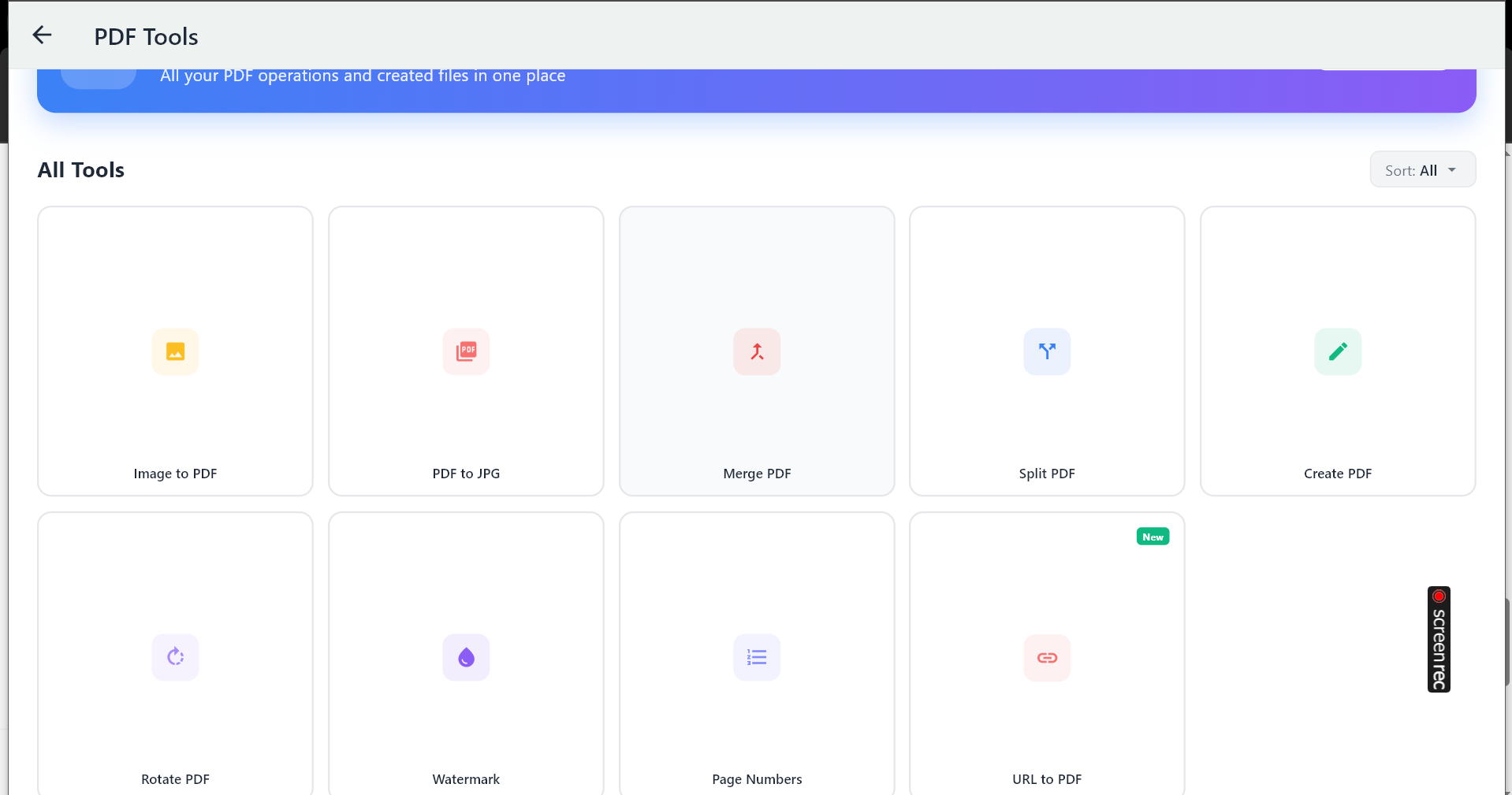 All your PDF operations and created files in one place.